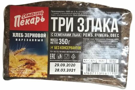 Хлеб Самарский Пекарь Три злака со льном нарезка 350г доставка