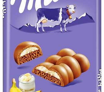 Шоколад молочный пористый Milka Bubbles с бананово-йогуртовой начинкой доставка