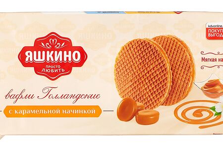 Вафли Голландские Яшкино с карамельной начинкой доставка