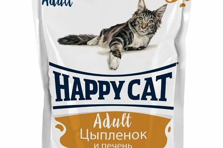 Хэппи Кэт, Кусочки в желе, Цыпленок и Печень с Морковью(Happy Cat, in Jelly, Chicken, Liver) (Пауч) (100 гр) доставка