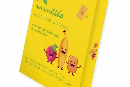 Шоколад N Натуральный Kids молочный с малиной бананом и карамелью, 44г доставка