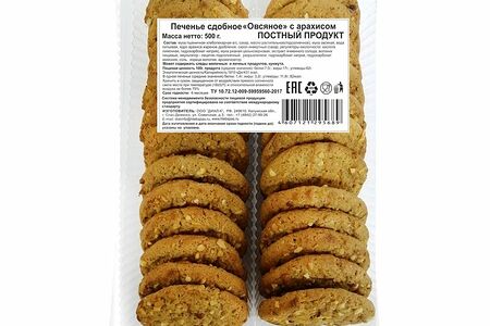 Печенье Хлебный Спас Овсяное с арахисом сдобное, 500г доставка