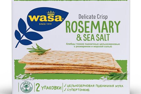 Хлебцы пшеничные цельнозерновые Wasa тонкие Delicate Crisp Rosemary & Sea salt с розмарином и морской солью доставка