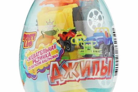 Жевательная резинка Secret Lab Джипы со вкусом апельсина в пластиковом яйце с игрушкой 7г доставка