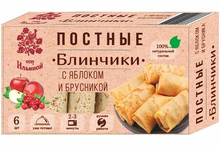 Блинчики ОТ ИЛЬИНОЙ постные с яблоком и брусникой замороженные 360г доставка