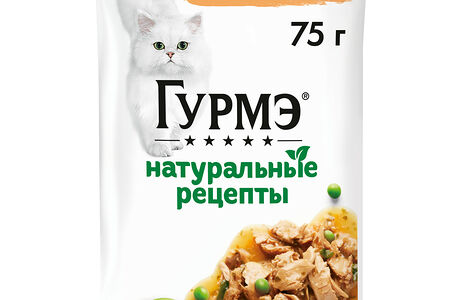 Влажный корм Гурмэ Натуральные рецепты для кошек, томленая индейка с горошком 75 г доставка