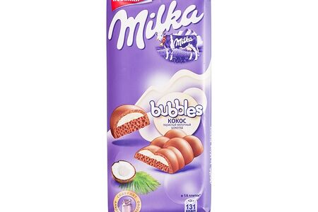 Шоколад молочный Milka Bubbles пористый c кокосовой начинкой доставка