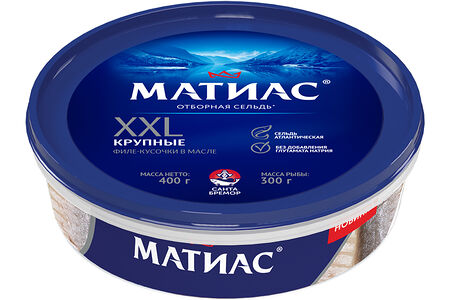 Филе-кусочки сельди атлантической "Матиас" в масле "XXL отборный" доставка