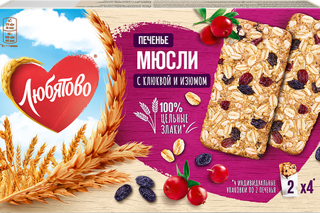 Печенье-мюсли злаковое с клюквой и изюмом ТМ Любятово доставка