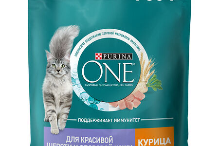 Сухой корм Purina ONE® полнорационный для взрослых кошек для красивой шерсти, здоровой кожи и контроля образования волосяных комков, с высоким содержанием курицы, 750 г доставка