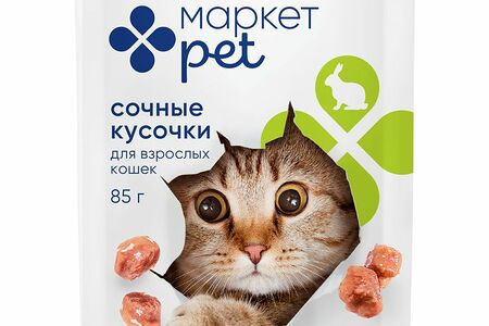 Корм Сочные кусочки в желе с кроликом для взрослых кошек Маркет Pet, 85г доставка