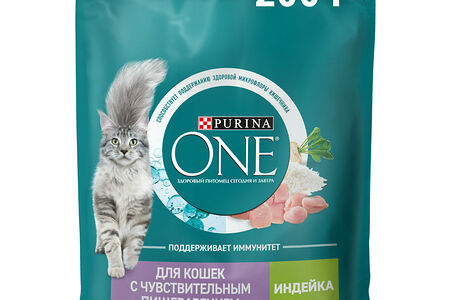 Сухой корм Purina ONE® полнорационный для взрослых кошек с чувствительным пищеварением и разборчивым вкусом в еде, с высоким содержанием индейки, 200 г доставка