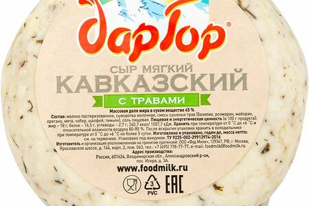 Сыр мягкий Дар Гор Кавказский с травами 45% доставка