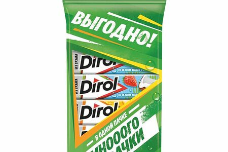 Срок годности в днях: 730Состав: DIROL Арбузно-дынный коктейль - жевательная резинка без сахара с арбузно-дынным вкусом. 3 шт.x 13.6г, Dirol - жевательная резинка без сахара со вкусом кокоса и клубники. 3 шт.x13.6гПищевая ценность: Калорийность: 195Белки: 0.5Жиры: 1.9Углеводы: 71Страна изготовления: РоссияПроизводитель: Dirol
