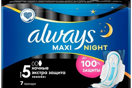 Прокладки гигиенические Always Maxi Night Extra с крылышками размер 5 7 шт доставка