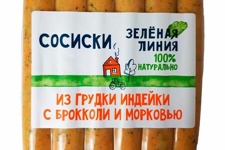 Сосиски из грудки индейки с брокколи и морковью высший сорт Зелёная Линия, 300г доставка