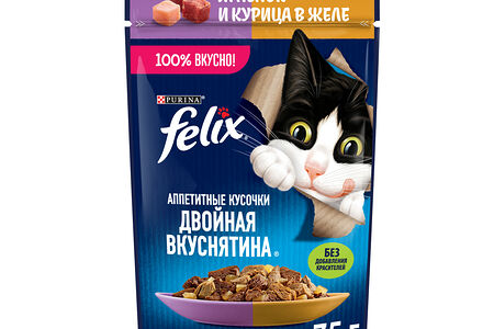 Влажный корм Felix Аппетитные кусочки, Двойная вкуснятина для взрослых кошек, с ягненком и курицей в желе 75 г доставка