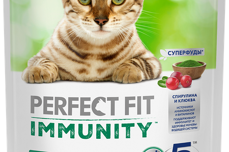 Сухой корм Perfect Fit Immunity для иммунитета кошек, индейка, спирулина и клюква, 580г доставка