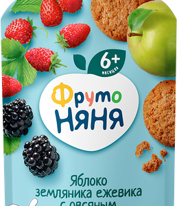 Пюре фруктово-ягодное ФрутоНяня Яблоко, земляника, ежевика, овсяное печенье, с 6 месяцев доставка