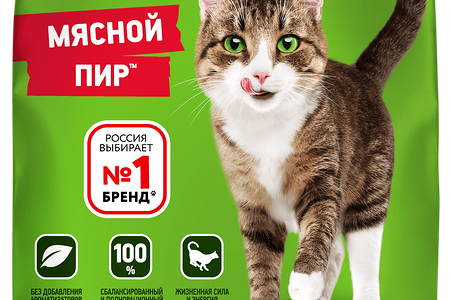 Сухой полнорационный корм KITEKAT™ для взрослых кошек «Мясной Пир», 800г доставка