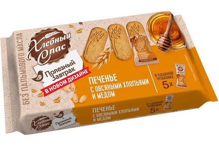 Печенье Полезный завтрак Хлебный Спас с овсяными хлопьями и мёдом доставка