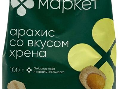 Ядра арахиса обжаренные в хрустящей оболочке со вкусом хрена Маркет, 100г доставка
