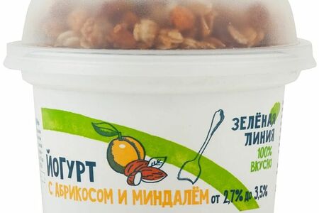 Йогурт с абрикосом миндалём и гранолой с изюмом 2.7-3.5% Зелёная Линия, 215г доставка