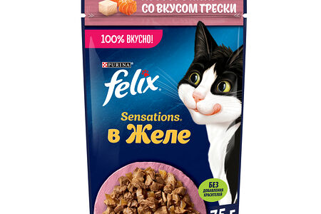 Влажный корм Felix Sensations для взрослых кошек, с лососем в желе с добавлением трески 75 г доставка