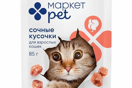 Корм Сочные кусочки в желе с индейкой для взрослых кошек Маркет Pet, 85г доставка