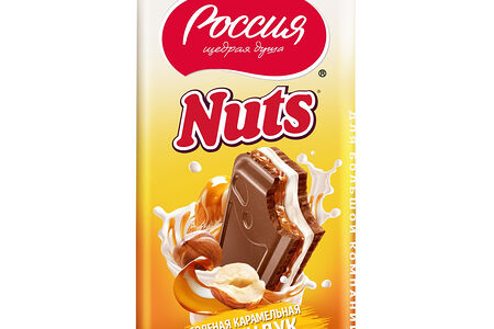 Шоколад Россия - Щедрая Душа молочный с солёной карамелью и фундуком и начинкой со вкусом нуги, 200 г доставка