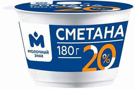 Сметана 20% Молочный Знак, 180г доставка