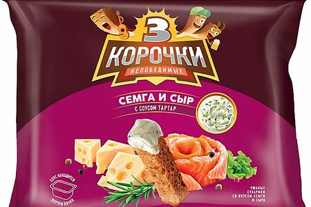 Сухарики Три корочки со вкусом сёмга с сыром 60г + соус тартар 25 мл доставка