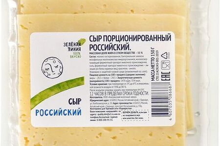 Сыр Зелёная Линия Российский нарезка 50%, 150г доставка