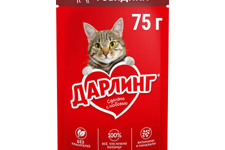 Влажный корм ДАРЛИНГ для взрослых кошек, с говядиной в подливе доставка