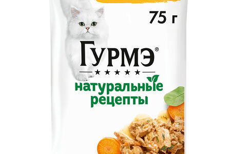 Влажный корм Гурмэ® Натуральные рецепты для кошек, курица на пару с морковью, Пауч, 75 г доставка