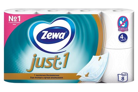 Туалетная бумага Zewa Just-1 4-х слойная 8 рулонов Россия доставка