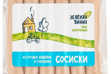 Сосиски из грудки индейки и говядины из мяса птицы 1 сорт Зелёная Линия доставка