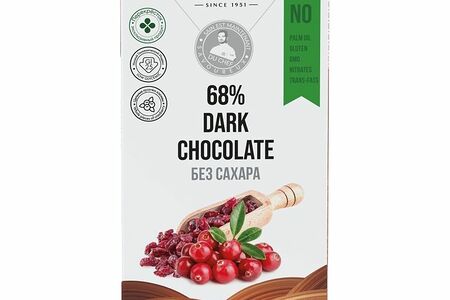 Шоколад Jean Rene темный авторский с вяленой клюквой без сахара 68%, 80г доставка