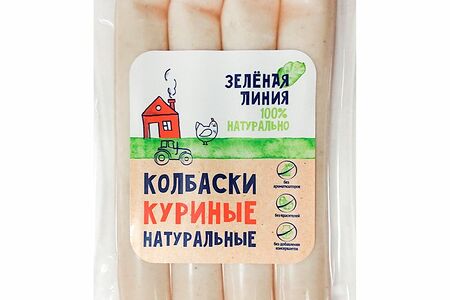 Колбаски варёные куриные натуральные из мяса птицы высший сорт Зелёная Линия, 240г доставка