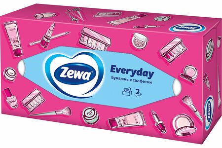 Салфетки бумажные косметические Zewa Everyday, 2 слоя, 100 шт доставка