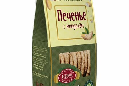 Срок годности в днях: 180Состав: Мука пшеничная, масло растительное, сахар тростниковый, миндаль молотый, сода пищевая, соль поваренная пищевая.Пищевая ценность: Калорийность: 285.2Белки: 7.1Жиры: 13.2Углеводы: 34.5Страна изготовления: РоссияПроизводитель: Печенежность
