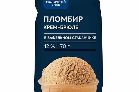 Мороженое пломбир крем-брюле в вафельном стаканчике 12% Молочный знак, 70г доставка
