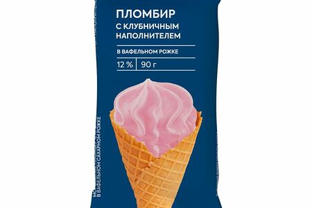 Пломбир с клубничным наполнителем в рожке 12% Молочный Знак, 90г доставка