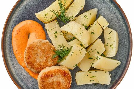 Котлеты рыбные из трески с отварным картофелем Шеф Перекрёсток, 260г доставка