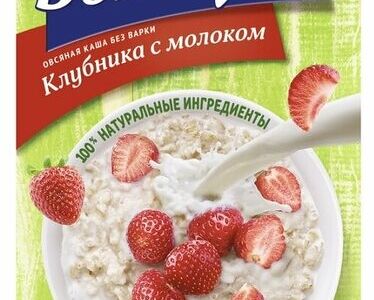 БЫСТРОВ Каша овсяная без варки клубника с молоком коробка, 240 г (40 г х 6 шт.) доставка