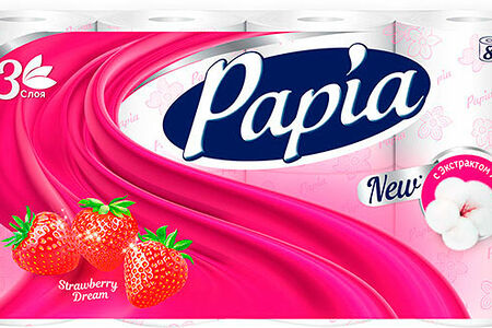 Туалетная бумага Papia Клубничная мечта 3 слоя 8 рулонов доставка