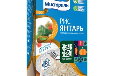Рис длиннозёрный Янтарь Мистраль пропаренный, 5×8 доставка