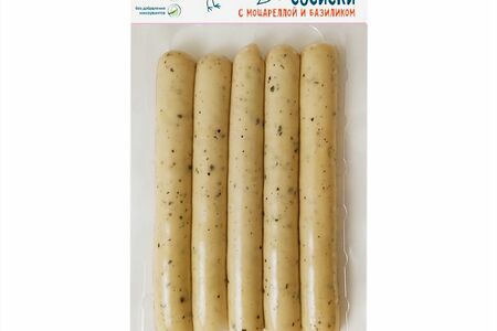 Сосиски из мяса птицы с моцареллой и базиликом вареные 1 сорт Зелёная Линия, 250г доставка