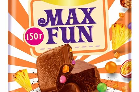 Шоколад молочный Alpen Gold Max Fun Манго, ананас, маракуйя, взрывная карамель, шипучие шарики доставка