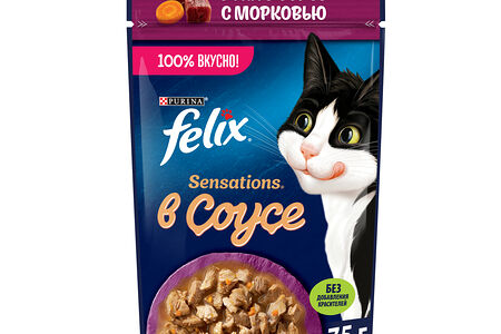 Влажный корм Felix Sensations для взрослых кошек, с уткой в соусе с морковью 75 г доставка